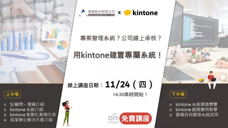雲碼將在 11/24(四)下午舉辦免費的 kintone 線上講座,